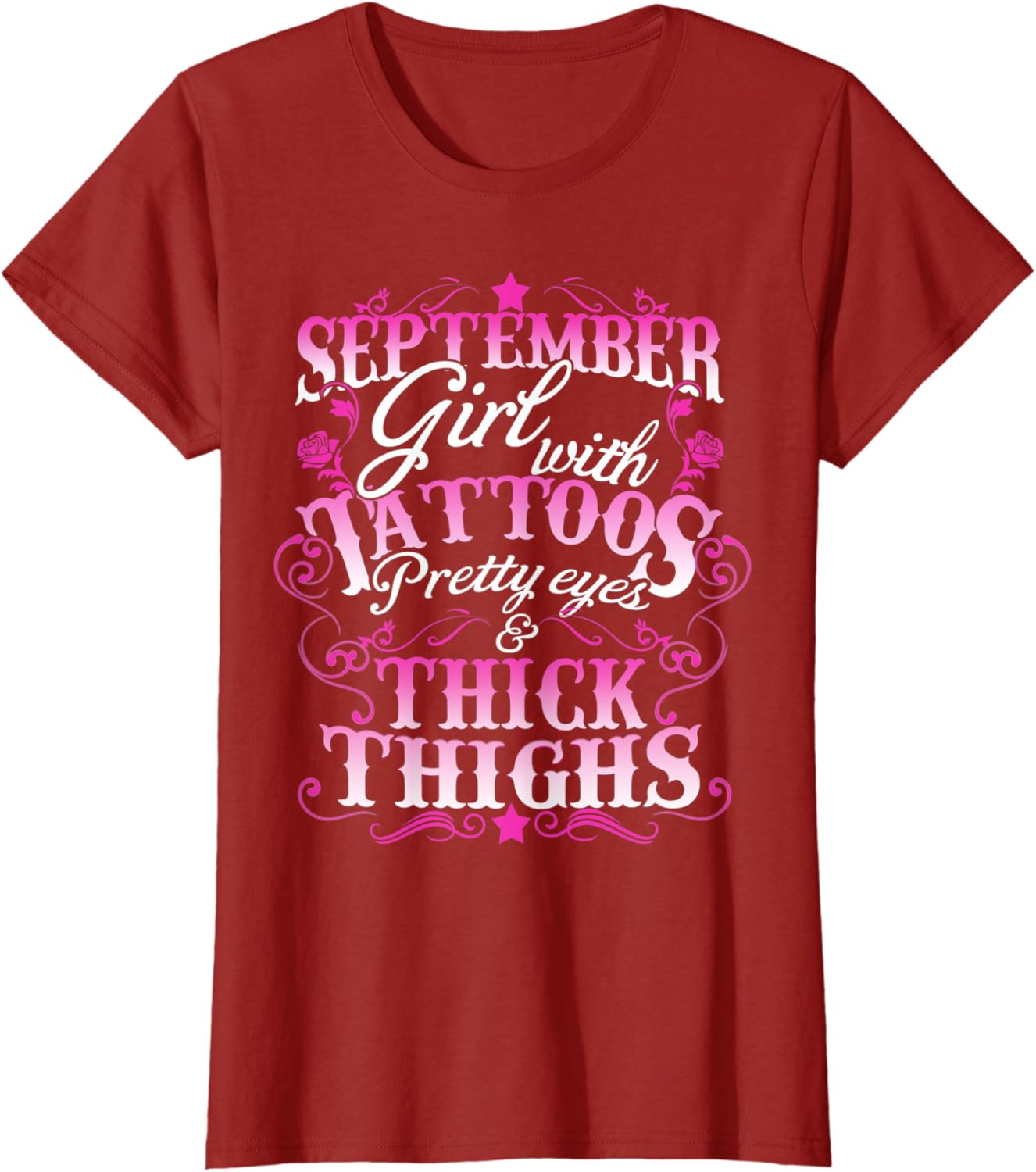 Amazon Com Womens September Girl With Tattoos Pretty Eyes Thick Thighs T Shirt ביגוד נעליים ותכשיטים